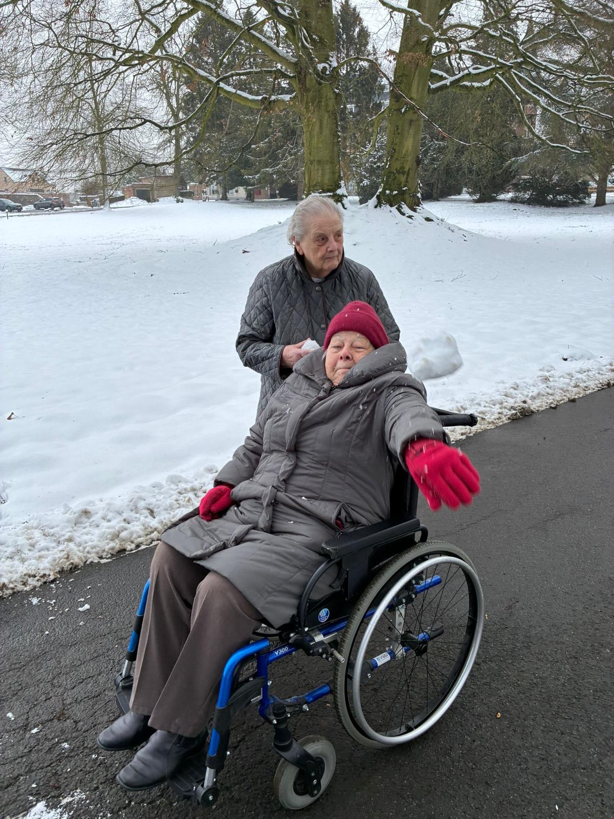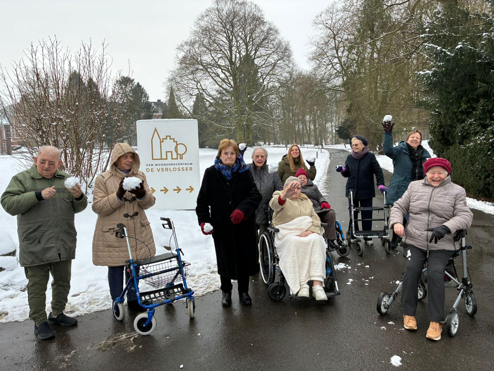 Samen met medewerkers maakten onze bewoners een rustige wandeling over het kasteeldomein. Sneeuw dempt geluiden, verzacht het landschap en nodigt uit tot vertragen. Er werd gelachen, herinneringen aan vroeger werden gedeeld en hier en daar bleef iemand even stilstaan om bewust te kijken, te voelen en te genieten.