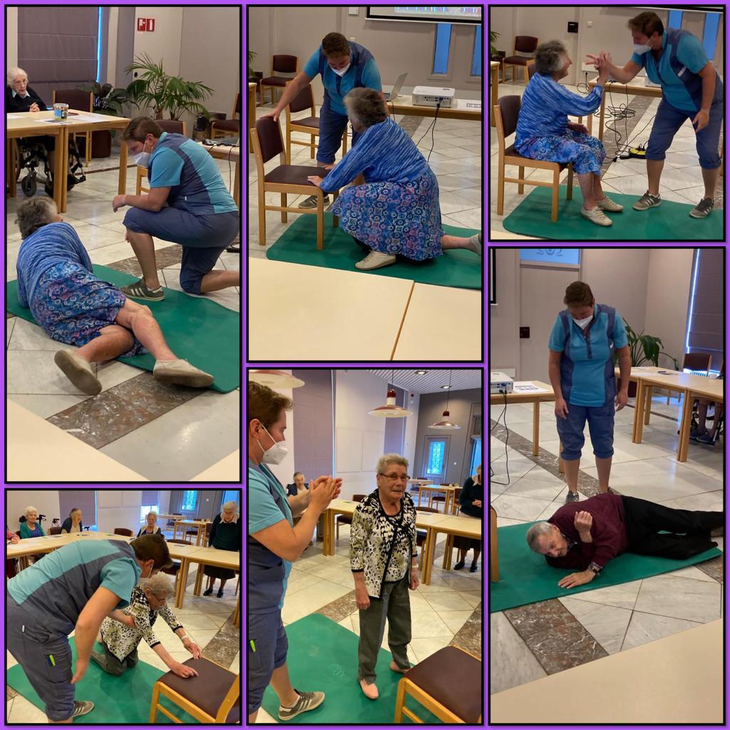 Om dit allemaal onder de aandacht te brengen werd er afgelopen week o.a. een valquiz georganiseerd waar de kennis van onze bewoners over valpreventie getest werd. Tegelijkertijd werd er geoefend hoe je moet rechtstaan als je toch zou vallen. Dit werd zeer gesmaakt door de bewoners!